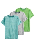 3-pack Dry Tek moisture-wicking technology Tag free Crewneck Short sleeves Fitted 50% polyester, 50% recycled polyester Machine wash Imported