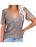 This womens summer lace sexy T-shirt is perfect for daily wear, working, vacation, party, beach.