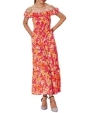 FEATURES - Floral print, off the shoulder, elastic ruffle sleeve, floor length, smocked top design with stretchy, high waist, a - line, pleated, sexy backless, loose fit.