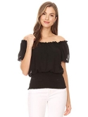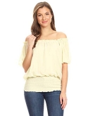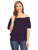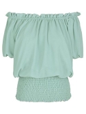 FEATURES - Sexy off shoulder, elastic cuffs short sleeve, neckline with elastic band, loose fit, pleated bodice can show off your charming curves, hide your stomach fat.