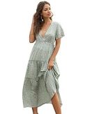 Features: Detailed with ruffle tiers, short sleeves, bohemian floral patterns, and deep v neck design. The lovely A Line dress is ankle length long and comes with a unique side waist tie.