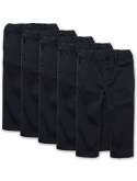 Skinny silhouettes with a pull-on EZ-fit waist, faux fly and button with hook and bar closure, slant pockets and back welt pockets