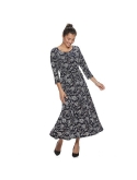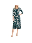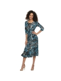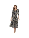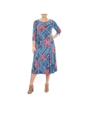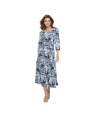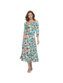 Bold print Scoopneck 3/4-length sleeves Coordinating sash Unlined 48-in. approximate length from shoulder to hem Midi cut Pull-on design Polyester, spandex Machine wash Imported
