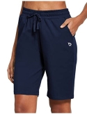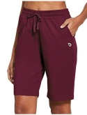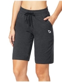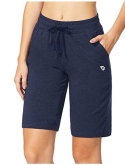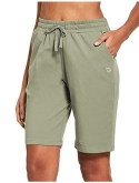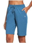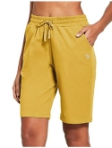 Loose fit - ladie's active bermuda jersey knit long sweatpants shorts with elastic waistband and adjustable drawcord for a custom fit