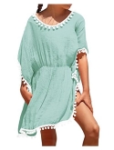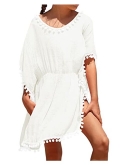 Features: Super cute girls swim cover up with pompom, round neck, drop shoulders, half sleeves, bat sleeve, elastic waist, above the knee, solid color, loose fit, bright and airy