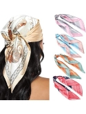 MATERIAL - 45% silk + 55% polyester. Premium quality fabric is breathable and skin-friendly. 4 pieces hair scarves in one package