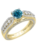 Dazzlingrock Collection 1.75 Carat (ctw) 14K Gold Round Blue & White Diamond Ladies Vintage Bridal Engagement Ring 1 3/4 CT