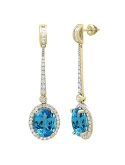 This stunning screw-backs drop earrings is a piece of jewel that will certainly amaze you which is Crafted in 10K Rose Gold; 11X9mm Oval Aquamarine Color: Blue & Clarity: Moderately Included; Aquamarine Weight: 5.2 Carat; Round White Diamond Color: I-J & Clarity: I2-I3; White Diamond Weight: 1.07 Carat