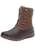 Leather and recycled rubber Bogs tall waterproof boots with adjustable lace front closure.