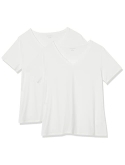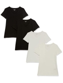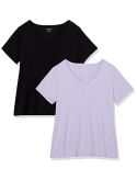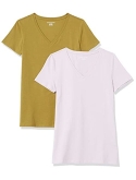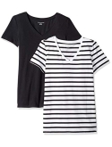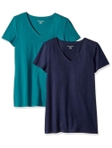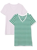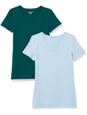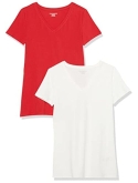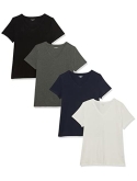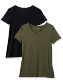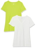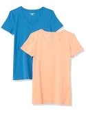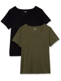 56% Cotton, 38% Modal, 6% Spandex Imported Machine Wash Close-but-comfortable fit with easy movement Lightweight jersey cotton blend with stretch V neckline An Amazon brand