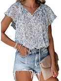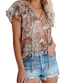 Features: Elegant Boho Shirt for Women, Sexy V Neck Blouse, Floral Fantasy Flutter Tie Top, Blouses for women fashion 2022, Womens Tops and Blouses, Cap Sleeve Tops, Business dressy work tops for women.