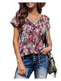 Material: 100% Polyester, The material is breathable, lightweight and skin- friendly, A shirt design top printed with charming floral pattern all over.