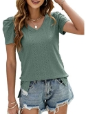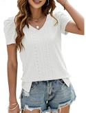 Features: Short Puff Sleeves, Crochet Pointelle Eyelet Design, V Neck, Solid Color, Loose Fitting, Side Split Hem. All these unique features make you stylish and keep cool in summer.