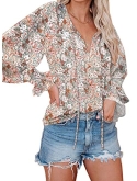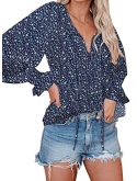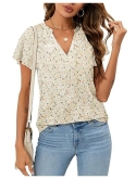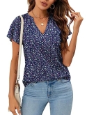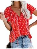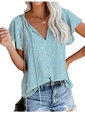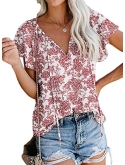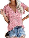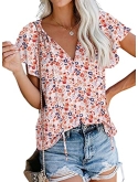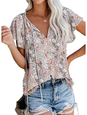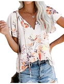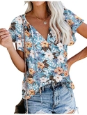 ✿ Features: Bohemian tops with floral printed, v-neck with a tied detail, and the fluttery sleeves are flowy and feminine too! This blouse is also easily dresses up or down, nice length to wear untucked (or tucked) to cover front and bum for a casual and stylish feelings!