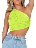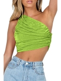 The shiny one shoulder ruched crop tops is chic,flattering,and soft into a one shoulder tank tops.The design of one shoulder neckline will show your flattering shoulder,ruched and cropped cut will make you look more fashionable.This crop tops is too trending!