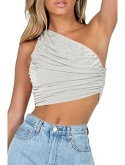 Design:one shoulder pull over,gathered ruched,one straps,sleeveless crop tops,slim fitting,asymmetrical tops,cropped tops,one shoulder tank tops,sexy cute crop top,camisole tops
