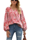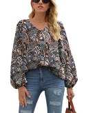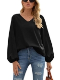 Casual Cute tops for women Balloon sleeve. Pair this V neck blouse with your ripped jeans pants for a stunning look