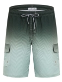 Pockets---2 slanted mesh pockets and 1 back cargo flap pocket with velcro and drain hole which could help accelerate water flowing down and achieve the effect of quick drying. Solid cargo swim trunks with 1 more cargo pockets at outer side thigh.