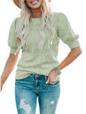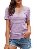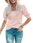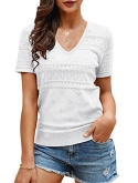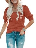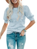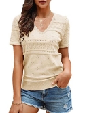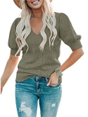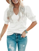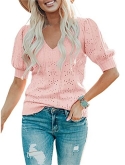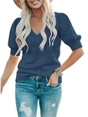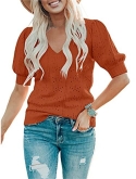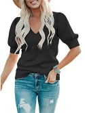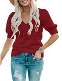 Casual short sleeve shirts features: V neck, puff short sleeve, loose fitting, pure color, plain t shirts, pointelle, cozy, cute summer tops for women. This short sleeve knit blouse is great for summer, fall and spring.