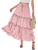 Style: Casual, cute and trendy style, drawstring waist layered maxi skirt for women, can be worn with blouse, cami, tee, t-shirt, tanks or tube tops
