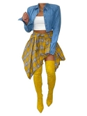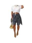 Women's Skirts High Waisted Self Tie Front Irregular Hem Flowy Knee Length Midi Plaid Skirt