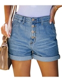Casual summer stretchy short jeans denim pants:Zipper Fly, high waist,folded hemline, ripped, washed,5 pockets,stretchy,button closure,soft and durable shorts for women,casual mid waist ripped destroyed shorts jeans,slim fit,fashion and cute denim shorts.