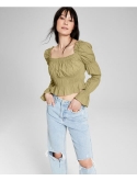 Plenty of ruched detail lends added dimension to this cropped cotton top from And Now This, complete with puff sleeves for a style win.