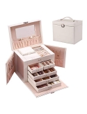Material:Our jewelry box organizer built with high quality PU leather outside, soft elegant velvet inside, detailed with faux-suede-lined compartments, attractive in appearance, protect your jewelry from dust and scratches.