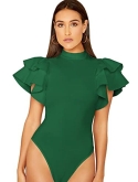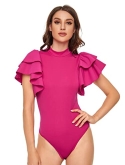Feature: Stand Collar, Tiered Layer, Ruffle, Skinny, Mid Waist, Butterfly Sleeve, Fashionable