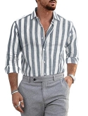 Pairs:Mens long sleeve button down shirts perfect match with Striped t-shirts,jeans, shorts, suit sportcoat blazer. It is an essential collocation item in men's wardrobe