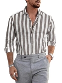 Features:Cotton linen long sleeve dress shirts for men, Striped color button down shirts, chambray casual shirt, sleeve wear as 3/4 sleeves or full sleeve.