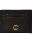 Grey heron leather Robinson logo-plaque cardholder from TORY BURCH featuring grained texture, logo plaque and card slots.