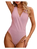 Bodysuits for women with plunge neck sexy deep V surplice ruched design