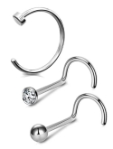 20g Nose Ring Hoop, 3PCS Grade 23 Solid Titanium Nose Rings, Clear CZ Nose Stud, L Shaped Nose Piercing Jewelry