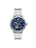 Emporio Armani's classically styled watch features exposed automatic movement and a stainless steel bracelet. Style #AR60052