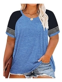 【Stylish Design】The Fashion Color Block Style With Blue And Striped Print Make This Plus Size Tops Cute And Stylish. It Is Long Enough To Cover The Hips And Hide The Tummy Well, You Will Love To Add In Your Wardrobe And Wear In Hot Weather.