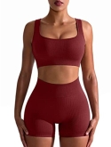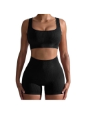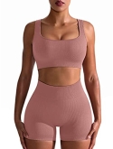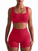 [Main Fabric] - This ribbed sports set made with lightweight,moisture-wicking power fabric.High elasticity, Comfortable, Breathable,Dry,The 4-way stretch to promote both compression and butt lifting, upper leg muscles and reduce muscle vibrations.