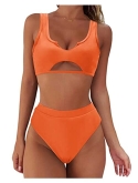 Cut Out Underboob Bikini Top: Sexy push up tank top, Notched v neck, Removable padding