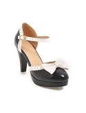 Design: T-strap cute bow Adjustable buckle design makes it easy to open and close, comfortable and stylish slip on the dress pump.