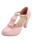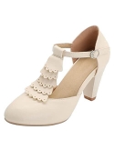 Low Chunky Heels for Women T-Strap Mary Jane Pumps Wedding Dress Shoes