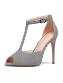 Features: Peep Toe. T-Strap. Adjustable Ankle Strap. Ankle Buckle. High Heels/Stilettos. Various Printing. Patent/Matte/Suede Leather.