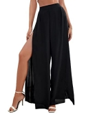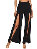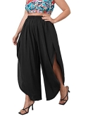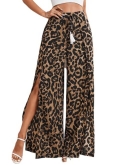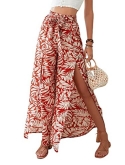 Features: split front, elastic waist, wrap, tie front, fringe