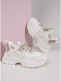 Color: White Outsole Material: Rubber Style: Sporty Quantity: 1 pair Strap Type: Lace Up Lining Material: Mesh Pattern Type: Colorblock Upper Material: PU Leather Insole Material: PU Leather Type: Chunky Sneakers