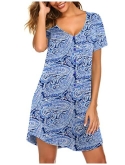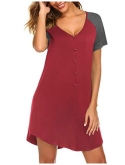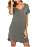 STYLISH&COMFORTABLE:This button down pajamas dress features V neck with buttons, loose curved hem,boyfriend style, hits mid-thigh,short sleeves,this stylish design will make you look slender and charming.loose fit and light material let you be comfortable while sleeping and doing work at home.