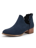 These classic western ankle boots with a comfortable stacked chunky block heel, cut out side, soft sole, with fold fungus flower edge design, round toe. Slip on closure, can be dressed up or down very easily.
