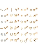 Gold Plated Stud Earrings Pack-You Can Get 24 Pairs Gold Tone Stud Earrings with One Order. There Are Round Square Heart Star Cubic Zirconia Earrings Studs, Cute V, U, Bar, Cross, Lightning, Circle, Moon, Ball, Triangle, Snake, Butterfly Etc Geometric Stud Earrings, 24 Kinds of Shapes Add More Fresh and Difference for Your Everyday Looks.