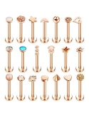 ECONOMIC TRAGUS EARRING SET--One Order Contains 20 Pieces Different Design Tragus Earring: Flower,Balls,Star,Moon,Opal,Punk,CZ Teardrop,CZ Star,CZ Balls and etc.There are Two Color to Choose:Steel Tone and Rose Gold Tone,So Many Labret Stud Piercings to Meet Your Daily Wear Needs.