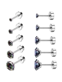 STAINLESS STEEL STUD EARRINGS SIZE: Cubic zirconia width 2,3,4,5,6mm, gauge size: 18g =1mm, bar length: 6mm. It is a good choice for people with many pierced ears, popular as cartilage helix stud earrings