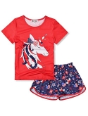 Short Sleeve pajama sets for girls, crew neck, Sleep shirts and pants set