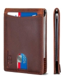 SLIM AND STYLISH - Made with the Finest Full Grain leather, Top Grain Leather and Vegan Leather. Designed Quick Access ID Windows, Best Fits 6-8 cards plus US bills with no bulk, and a minimal Pull-tab design to reduce bulk - Wallet Size: 3.9" in. x 2.85" in. 0.5" in.